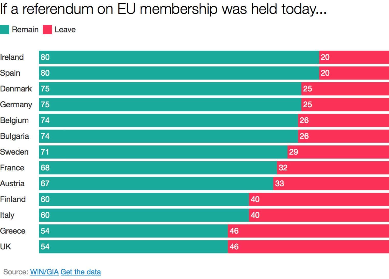 Every country surveyed would now vote Remain in an EU referendum... Including Britain