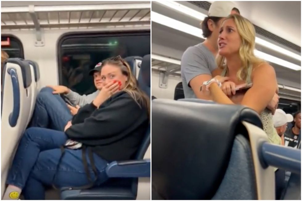 After being goaded by a fellow passenger to “hit” the object of her ire with “a right hook,” she attempts to march back over to the group.
