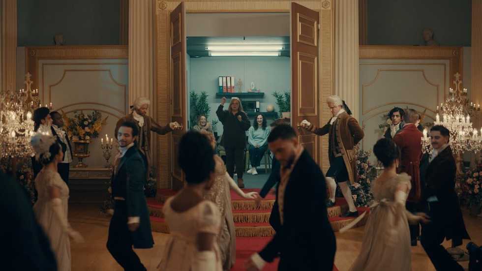 Sarah was then asked to tell the group a little bit about herself including her favourite TV programme. However, as she spelled out the name of the series on a whiteboard, a fake wall opened up to reveal a regency-style ball with dozens of dancers and a string quartet.