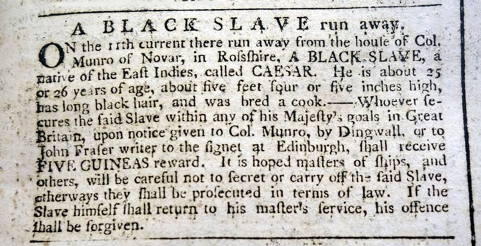 Researchers at the University of Glasgow discovered hundreds of such adverts posted in British newspapers in the early and mid-eighteenth century, dispelling the myth that slaves didn’t exist in Britain.