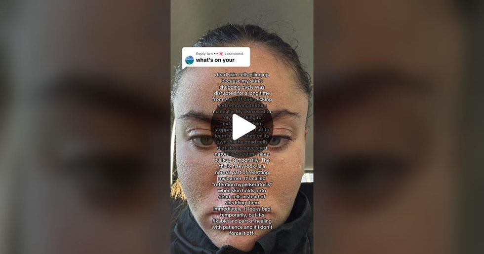 In one viral clip, Tia claims the flakiness is "dead skin piling up" as her skin's shedding cycle was "disrupted for years" after "picking and removing texture manually".