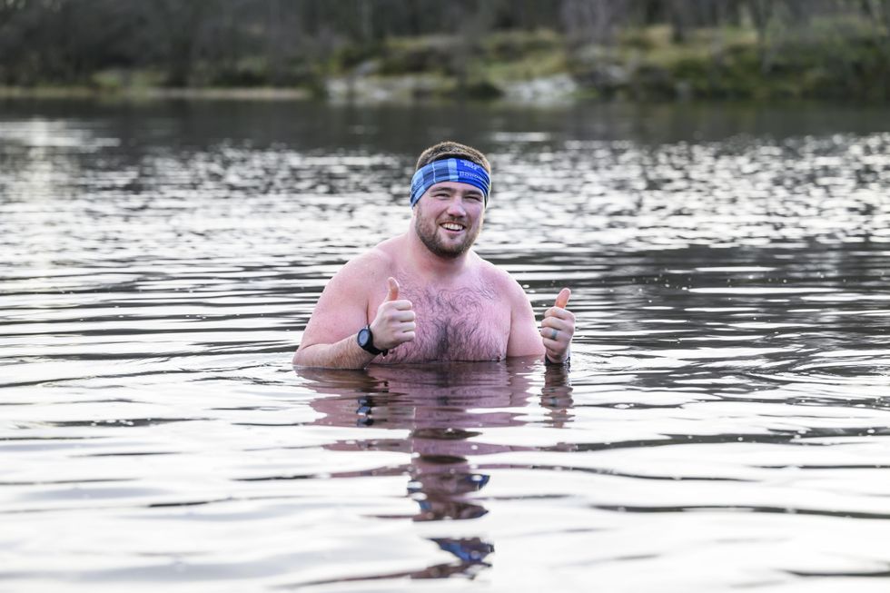 At the Drumclog reservoir in Milngavie, East Dunbartonshire, international Scottish rugby ace Zander Fagerson joined sports presenter Eilidh Barbour in braving the cold temperatures for motor neurone disease (MND).
