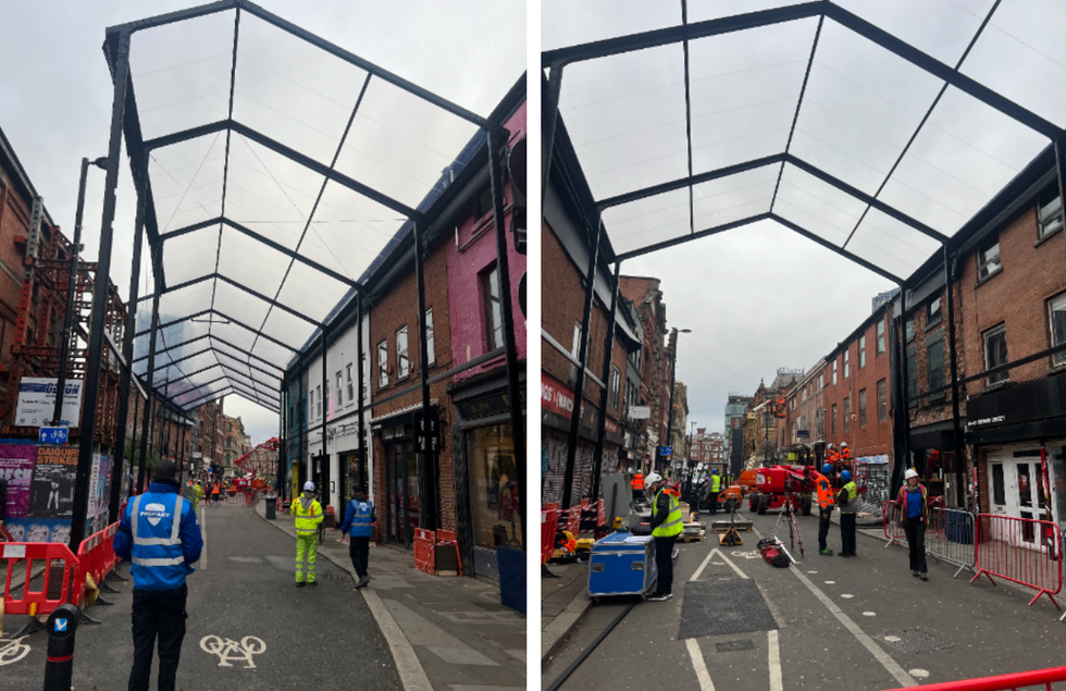 Metal structures, construction work and boxes labelled 'Chanel Manchester' have taken over the Northern Quarter since 17 November, with the area expected to return to a local hotspot on 15 December.
