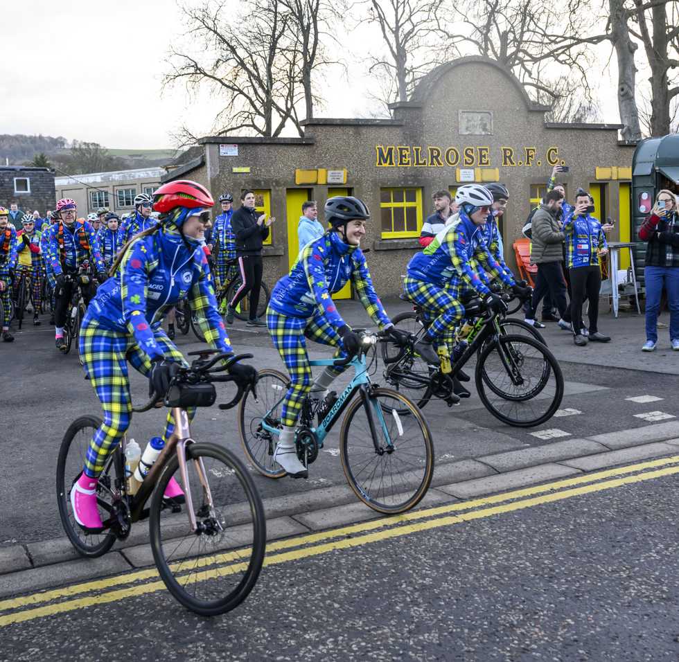 They were joined by Kathy Weir, 55, who is taking on her first major fundraising challenge, as they set off from Melrose in the Scottish Borders.