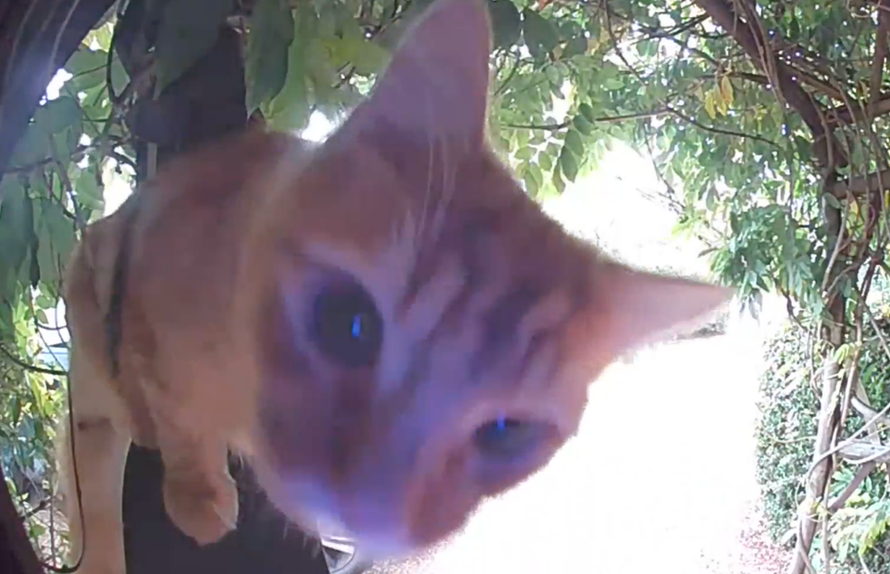 An intelligent cat has mastered the video doorbell to alert his owner when he wants to go back inside.