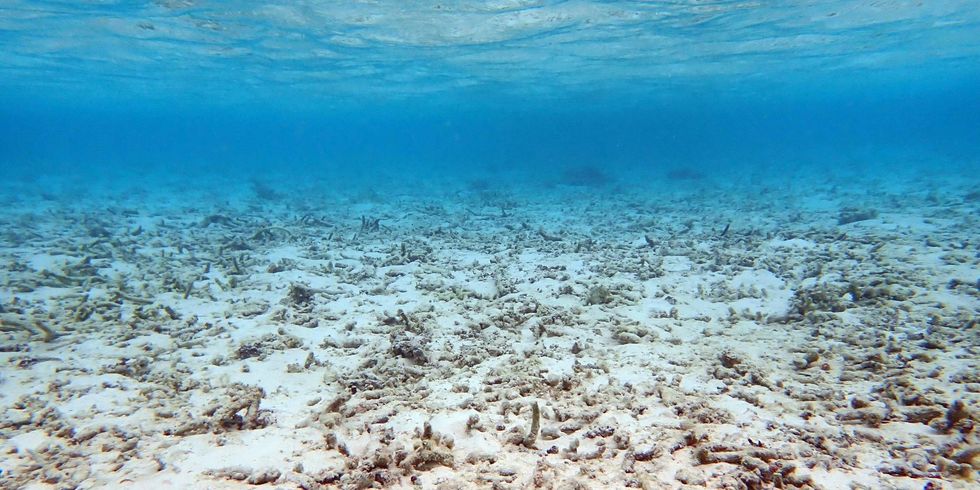 This means typically colourful corals turn white through a process known as coral bleaching.