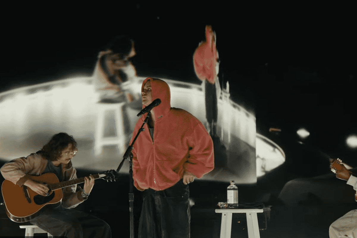 It's worth noting that Justin has access to a laptop while on stage, and keeps looking over at YouTube comments.