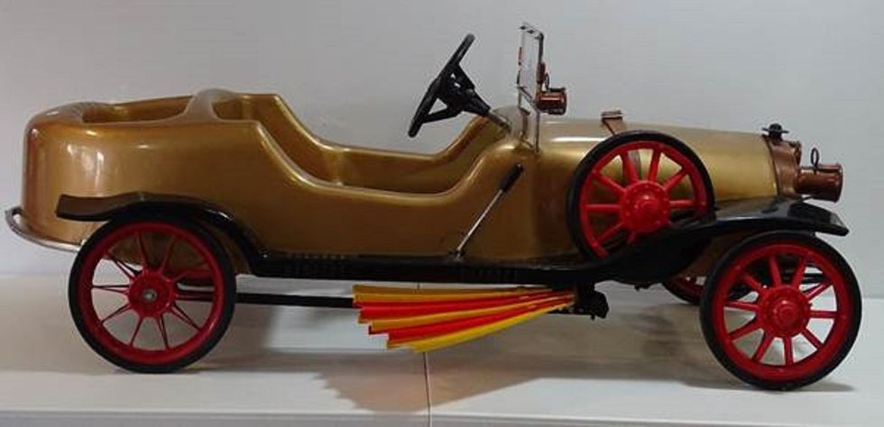 The item, moulded in plastic and finished in gold with a metal grille and bumper and extending wings, is one of only 12 recorded in the world.