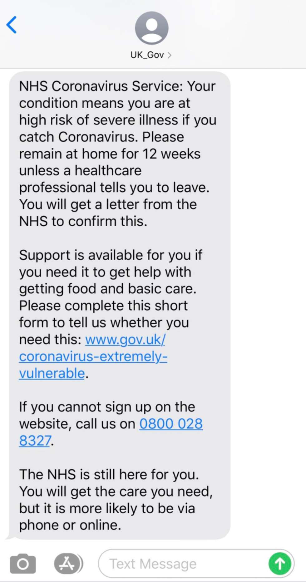 We're seeking clarity from @DHSCgovuk on these text messages. Please see @BritishHIVAssoc for the most accurate adv… https://t.co/oFHbislTuq— National AIDS Trust (@National AIDS Trust) 1586282241