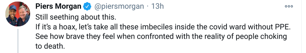Piers Morgan tweeted the clip and said he was “seething” about it.