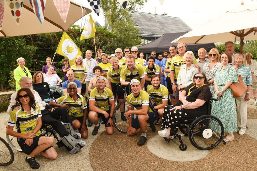 The team of five cyclists included Horatio’s brother Titus, former spinal injury centre patient Toby Morgan-Grenville and his fiancee Olivia Caplan, and family friends Robin Butler and Mortimer McKechnie.