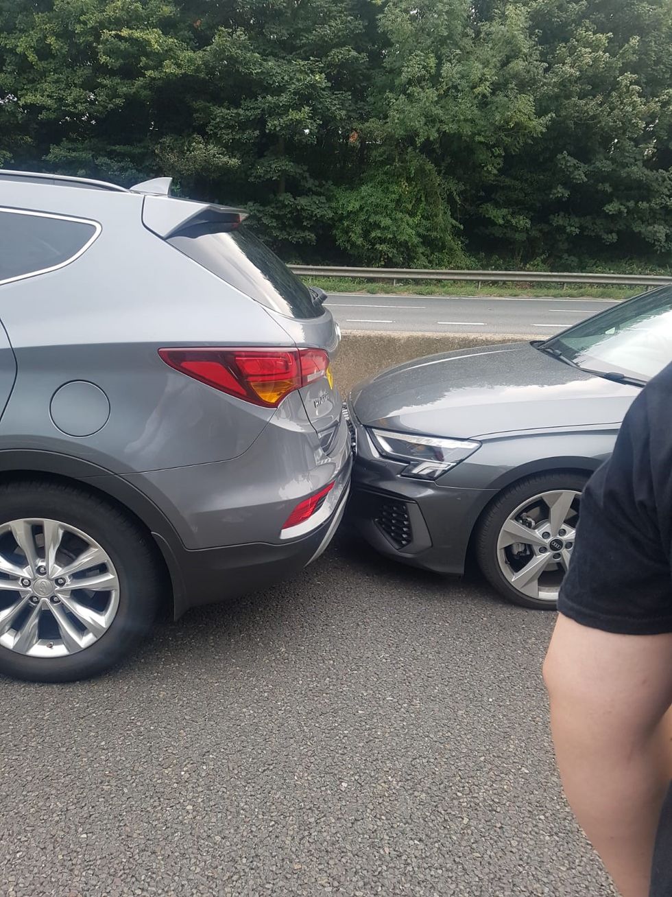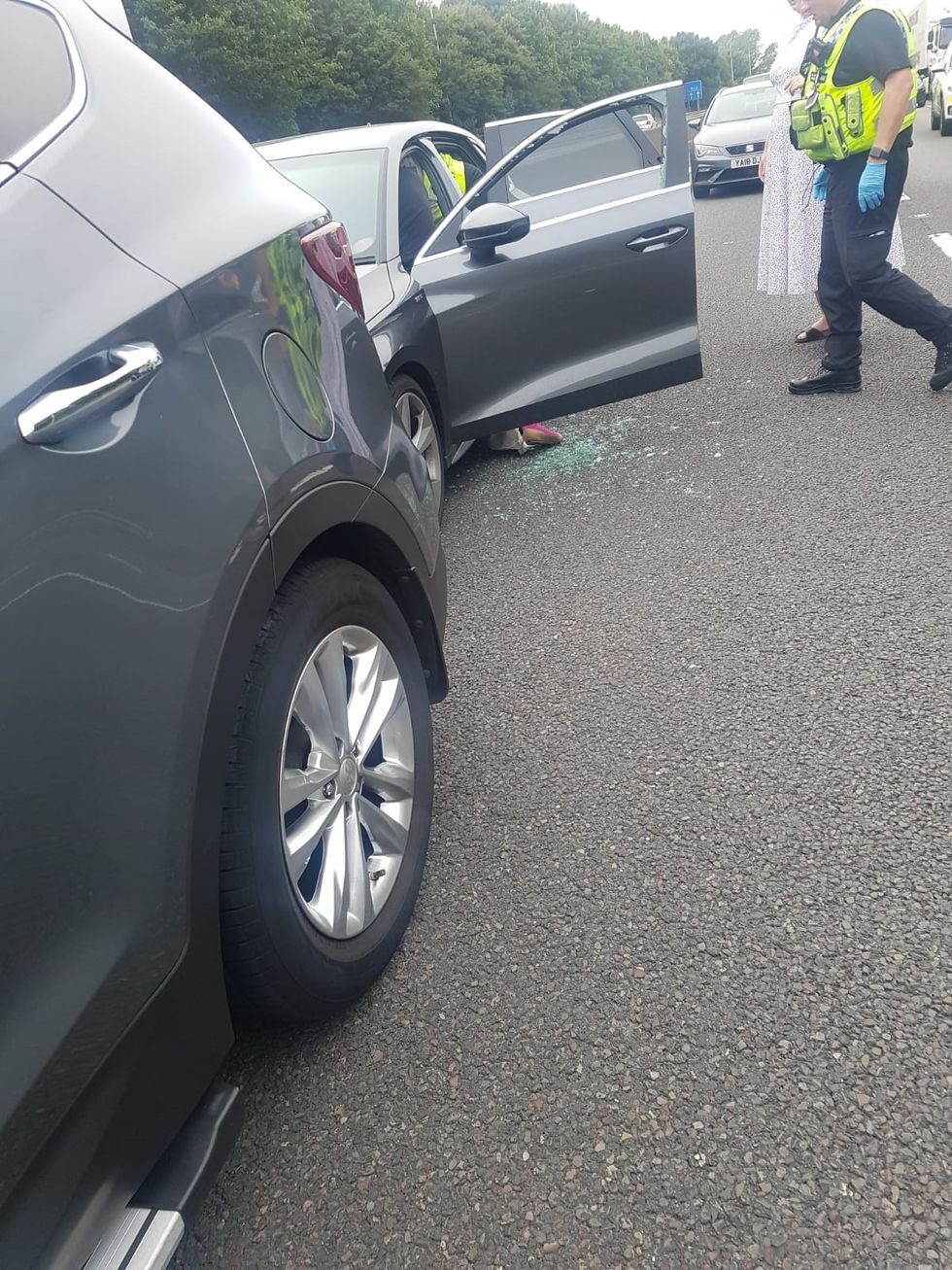 Others drivers stopped at the scene, bringing the four-lane carriageway to a halt, and a physio and an off-duty female police officer took over the first aid until paramedics arrived.