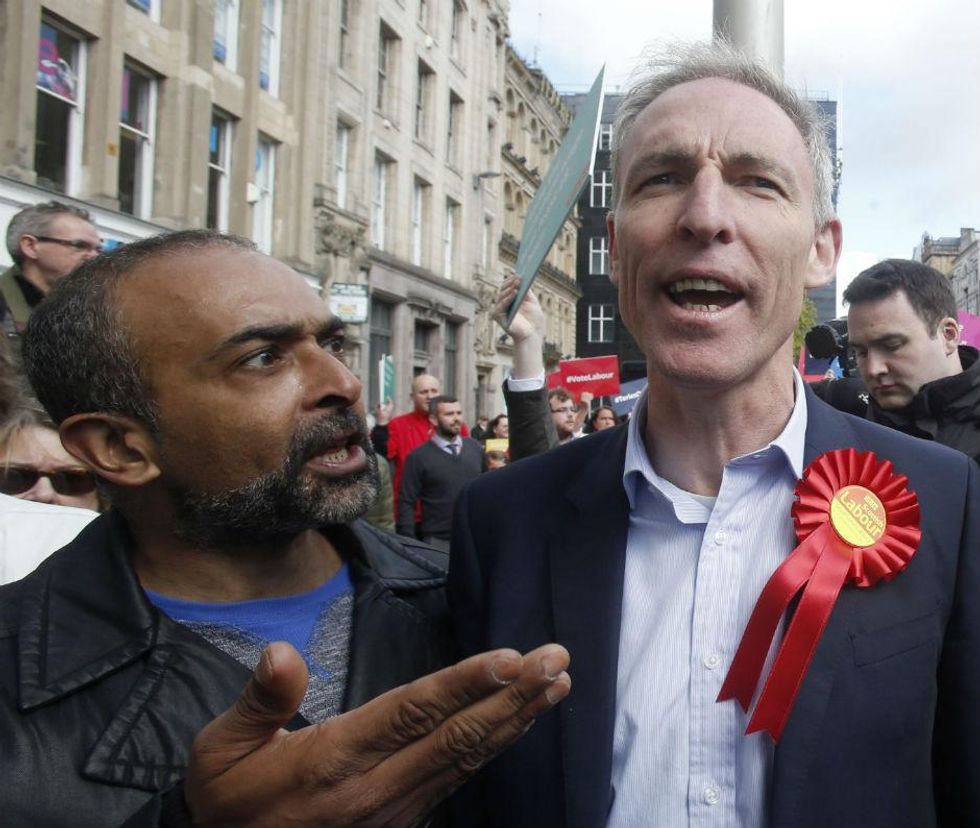 Picture: PAAs he stood on his soapbox, alongside celebrity Labour canvasser Eddie Izzard (who as you'll see below looked less than impressed to be there), a group of SNP supporters gatecrashed the event and started chanting "red Tories out".