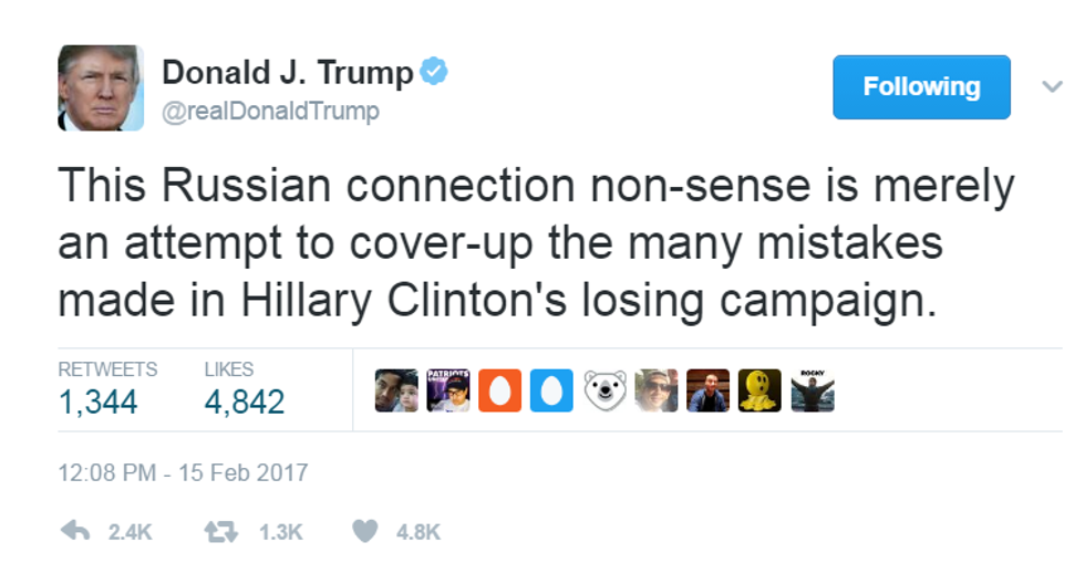 The president also tweeted that the whole thing was a cover-up for the Clinton campaign...