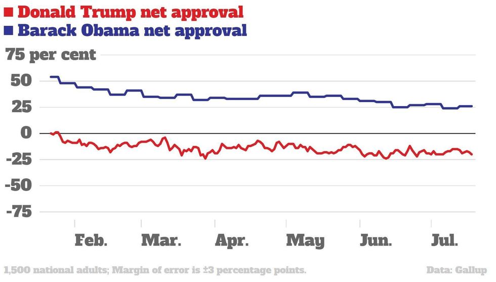 In addition, the investigation into his campaign's alleged collusion with Russia deepened last week, after Donald Trump Jr. tweeted proof on Tuesday that he met with a Kremlin-connected lawyer on the pretext that the meeting would provide damaging information on his father's opponent Hillary Clinton.
