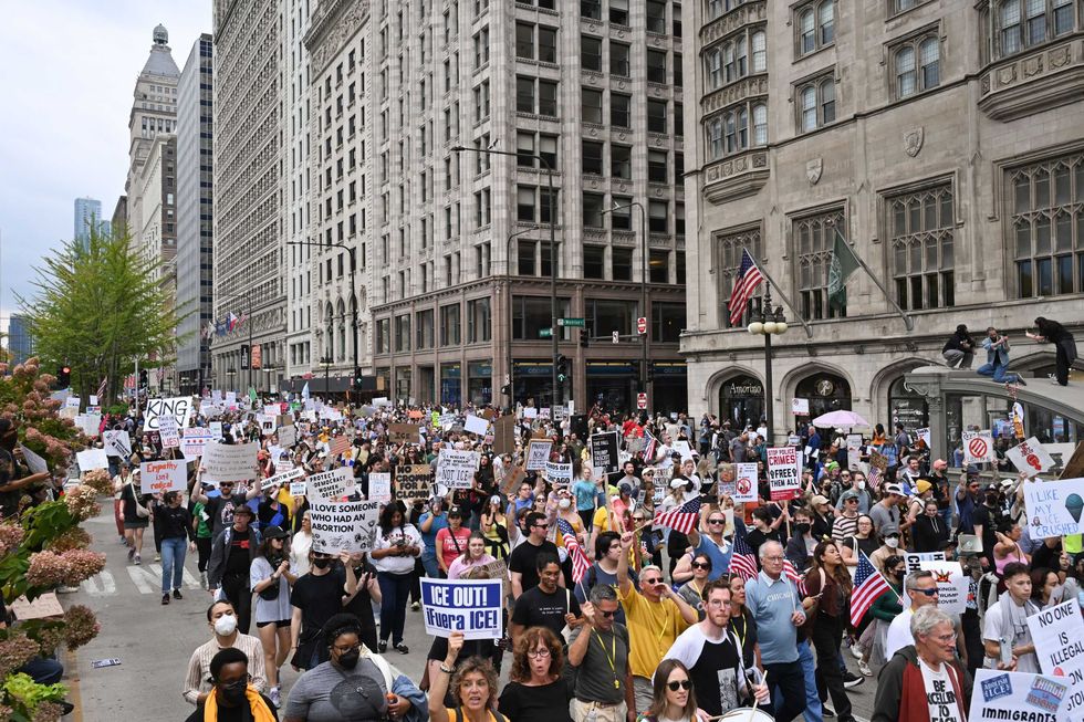 In Chicago, the line of protestors reportedly stretched two miles long as they filed into the city’s Grant Park.