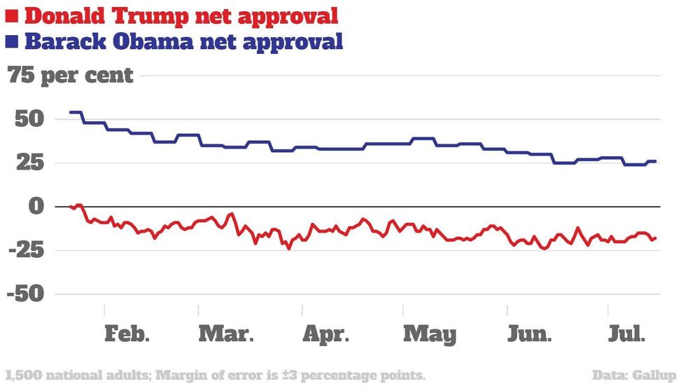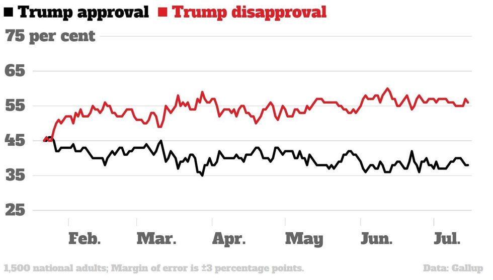 Trump has spent the overwhelming majority of his first sixth months in office with record negative approval ratings for a new President.