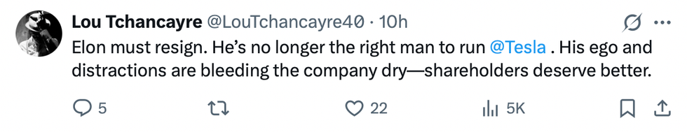 Over on X, people were quick to chime in on the latest Tesla news, with one urging Musk to resign.