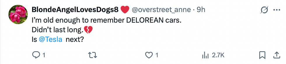 Another theorised whether Tesla would be next to follow in Delorean cars' footsteps, which went bankrupt in 1982.