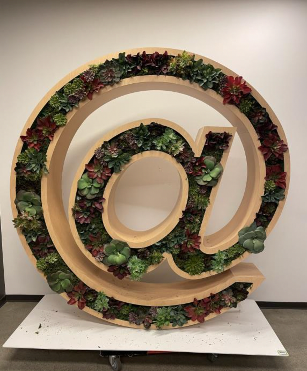 But there are some more interesting items including a Twitter bird statue, a bike station, and a giant "@" sculpture.