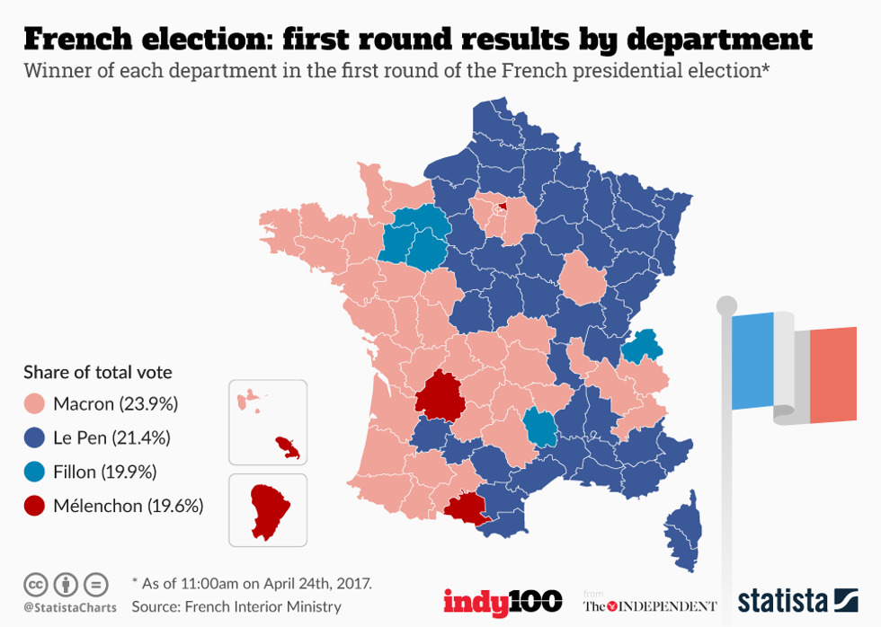On Sunday France held the first round of voting in the 2017 presidential election.