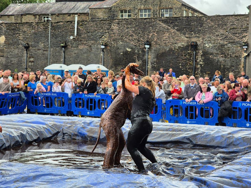The event saw contestants wrestle in a pool of gravy for two minutes, with points scored for fancy dress, comedy effect and entertainment, and money raised for the East Lancashire Hospice which supports people with life-limiting illnesses.