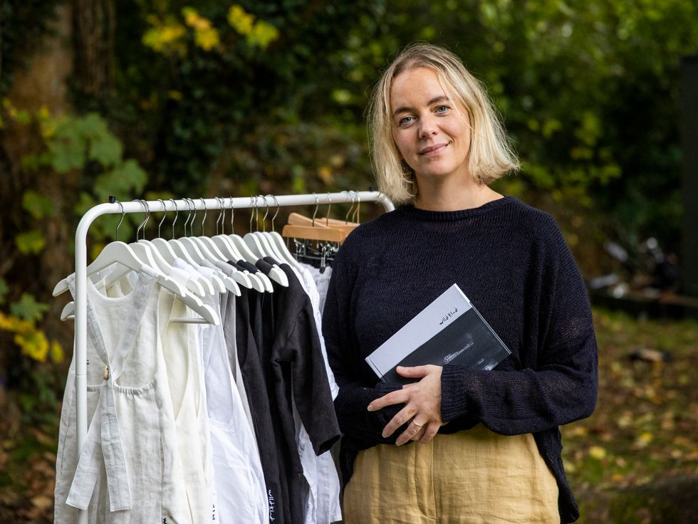 The zero-waste garments are made from off-cuts of linen sourced from local mills and are finished with buttons hand carved from driftwood found on beaches.