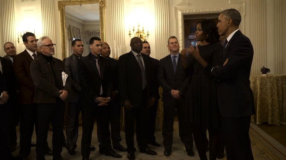 Michelle Obama hosts the Chicago Cubs, her favourite baseball team.