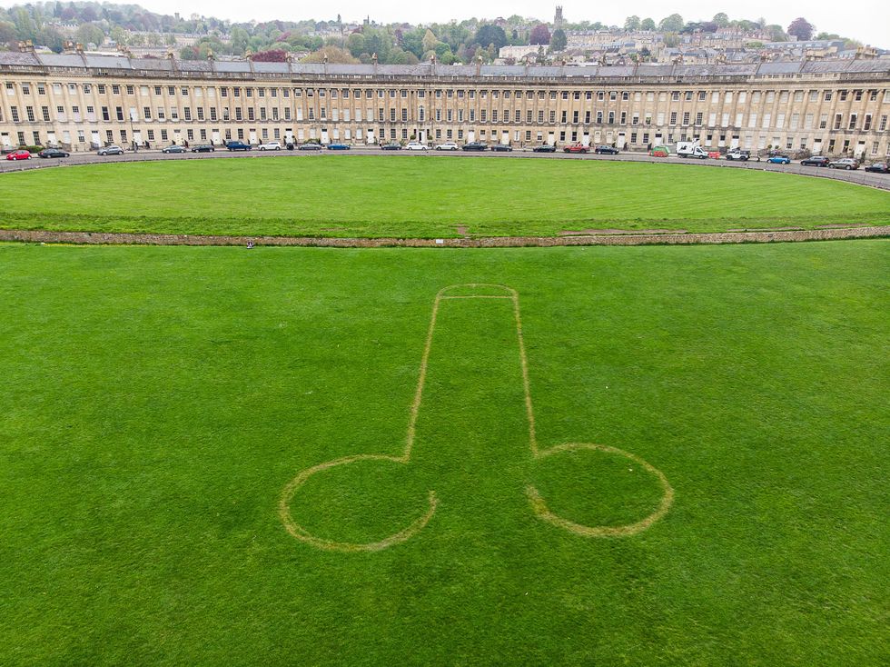 Residents of the posh Royal Crescent in Bath were stunned to see the large phallus on the grass outside their homes today (Thurs).