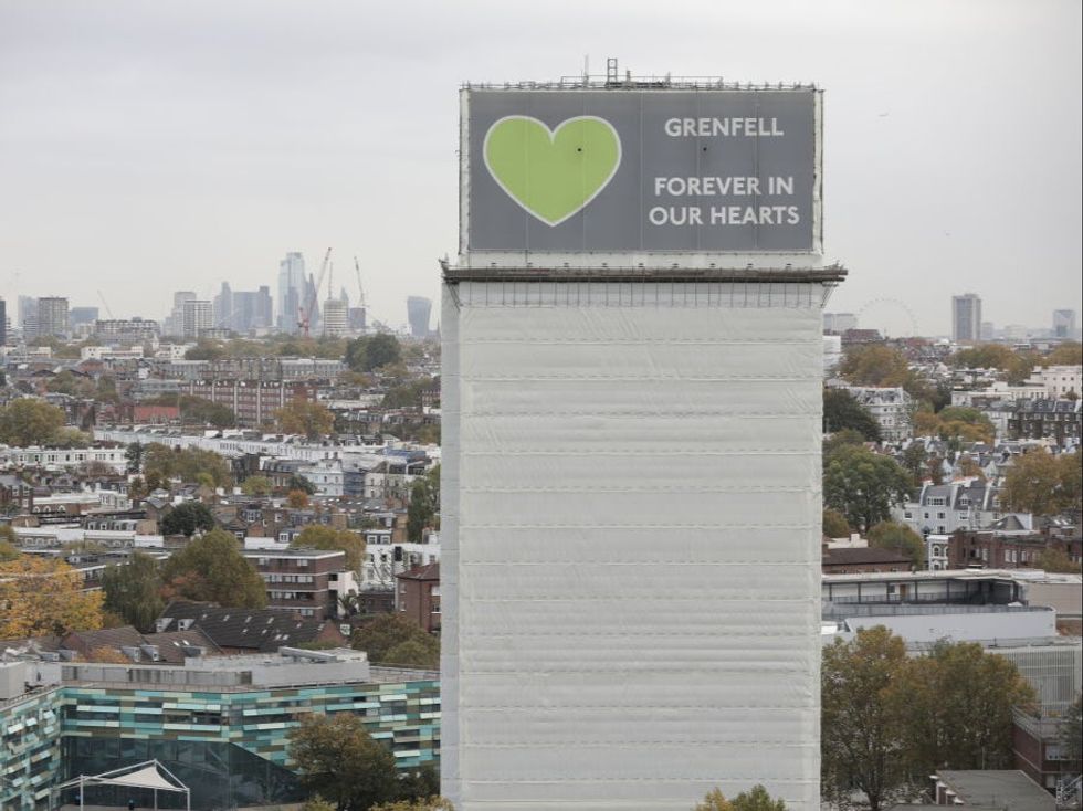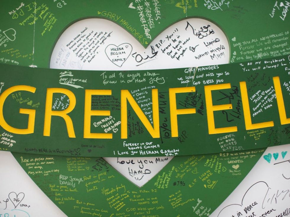 The green heart has become a symbol of rememberance for those lost, with the colour chosen because the name Grenfell is an adaptation of the world “green field.”