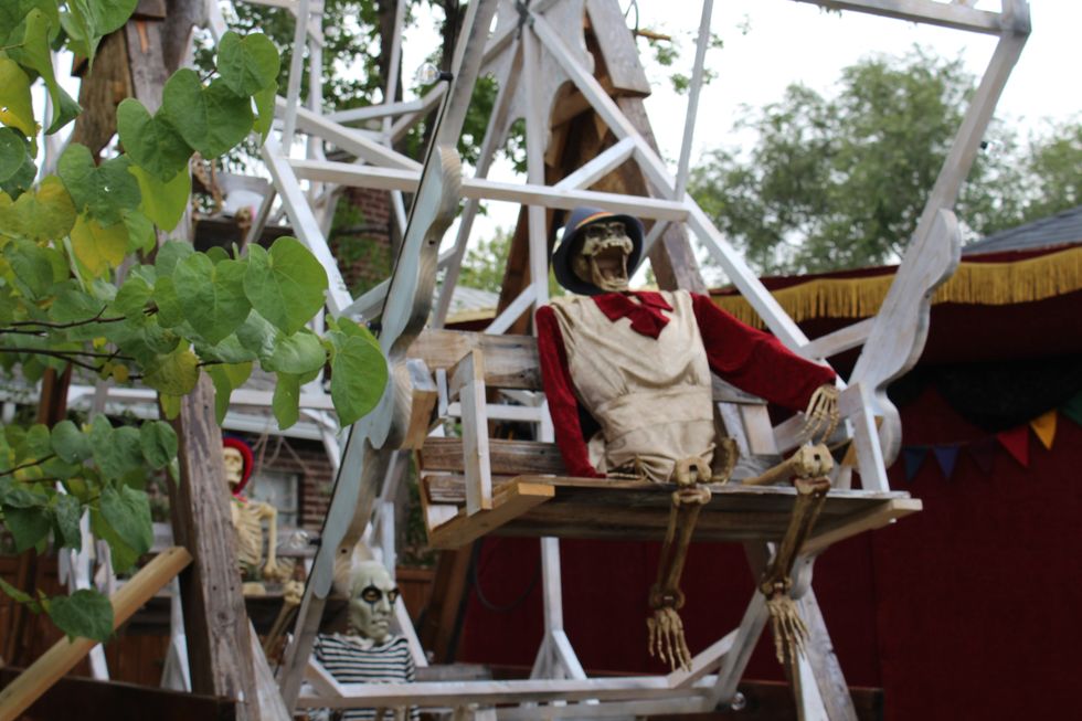 “I think my favorite part is the ferris wheel, because I built it,” he says, staring at its skeletal passengers. “It kind of speaks to me a little differently.” Smith estimates the towering structure is around 23 feet tall (his measuring tape only extends to 20 feet).