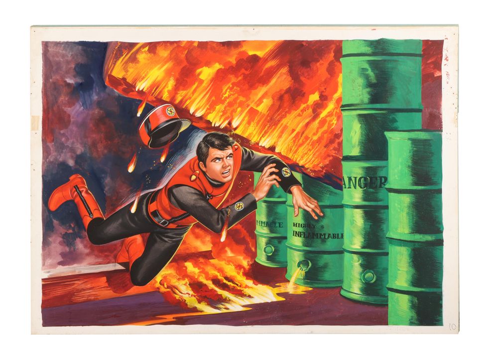The image of the “indestructible” hero, which shows Scarlet diving as inflammable barrels explode, was held in a private collection for more than 20 years, before becoming part of the auction by Propstore.