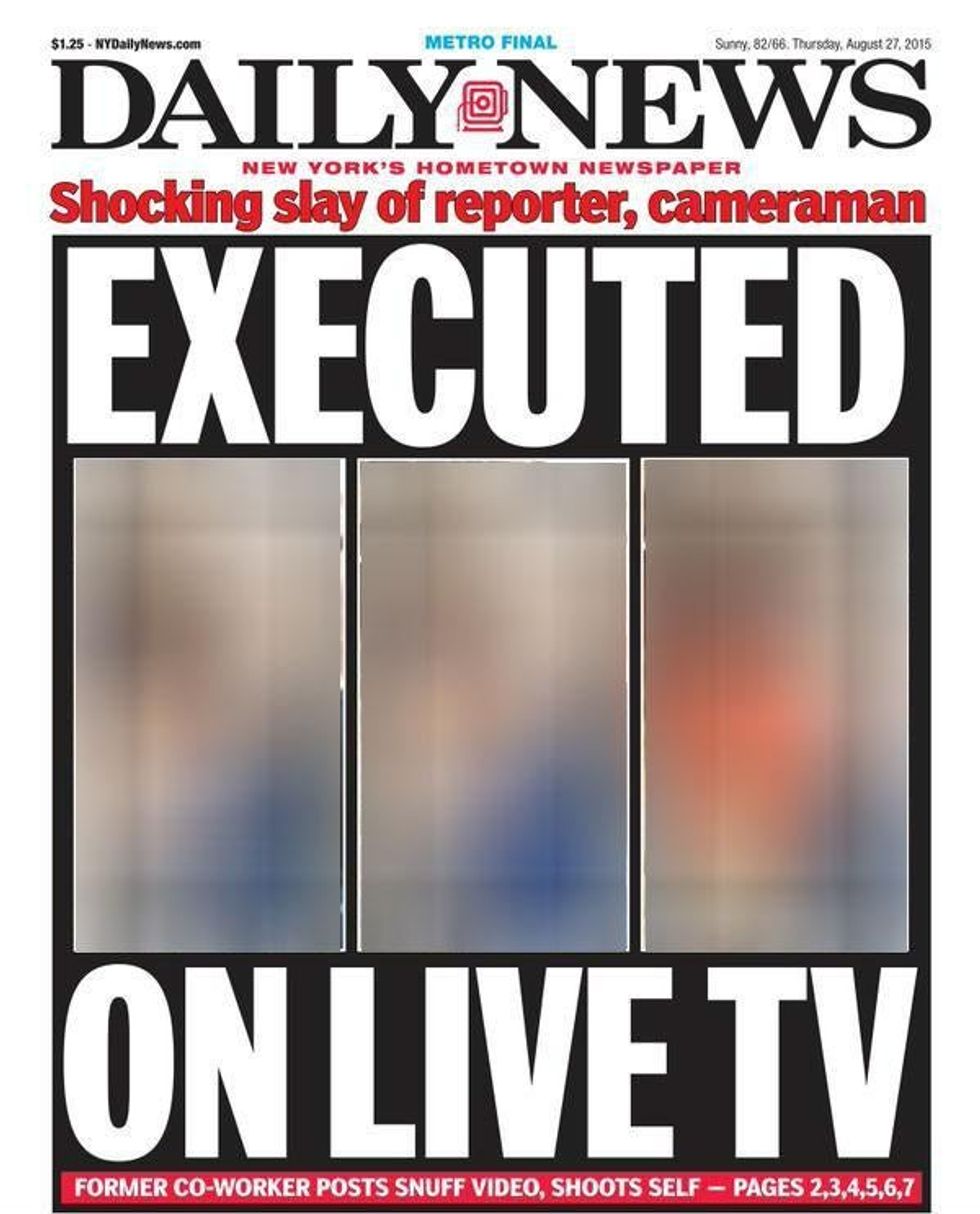 In the US, the New York Daily News came in for particular criticism from both readers and fellow journalists for its use of three distressing stills from the gunman's video under the shock headline: "EXECUTED ON LIVE TV."