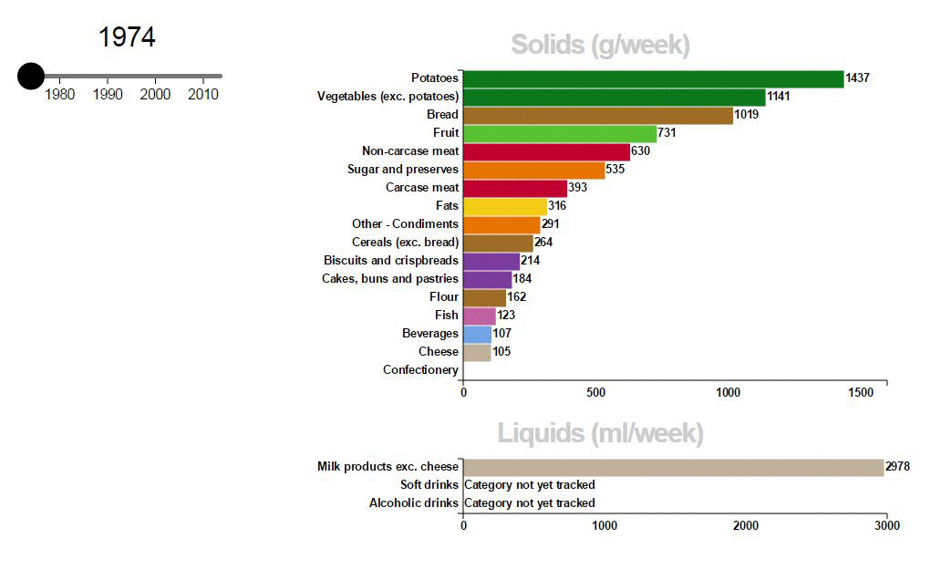 The Department for Environment, Food and Rural Affairs (Defra), has just released 30 years of food diaries filled out by families, alongside survey data running until 2014.