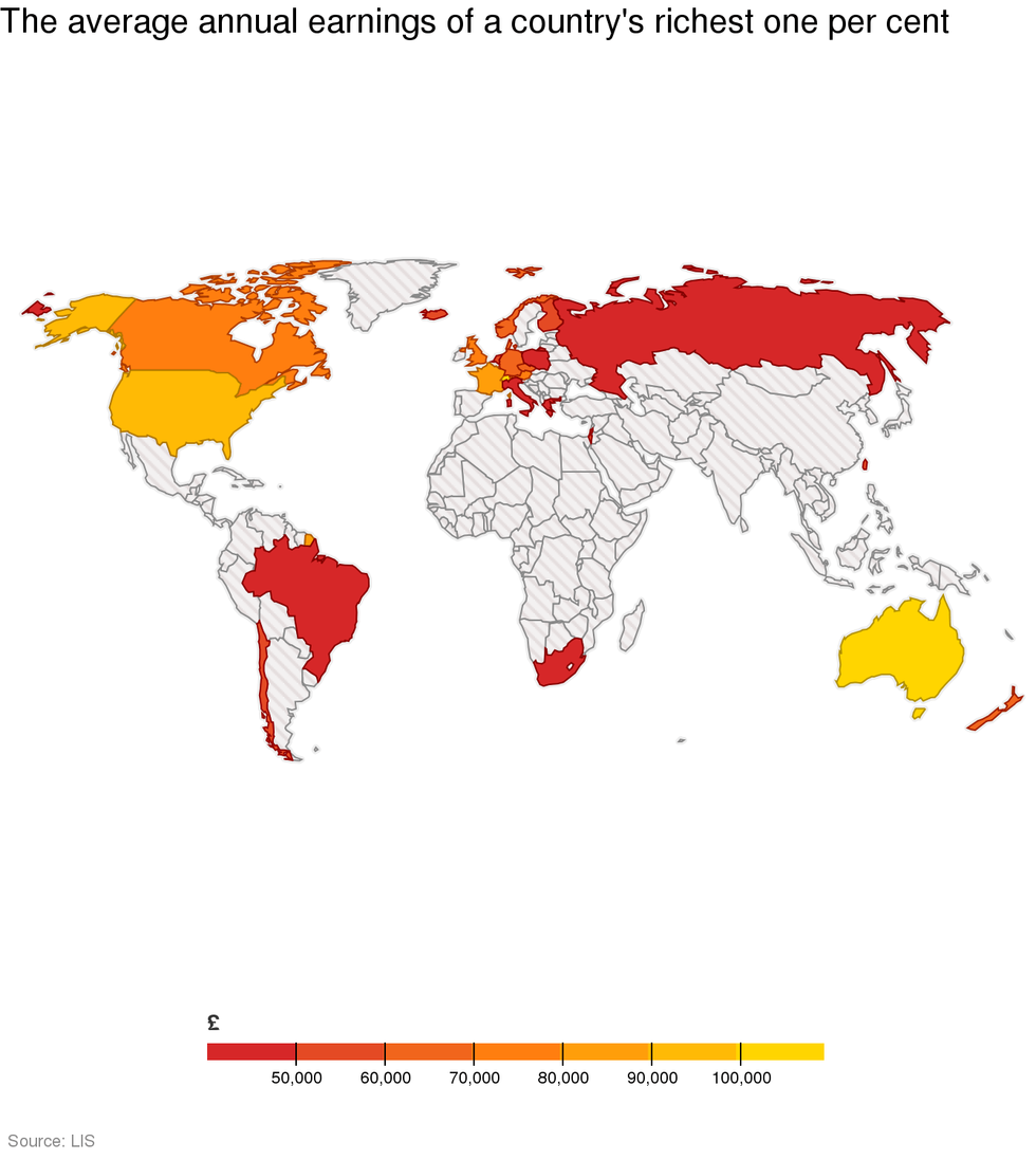 Economist Branko Milanovic, a professor at the City University of New York, figured out the average earnings you need to take home to be in the top percentile, after the figures are adjusted for taxes and the cost of living for the country you live in.