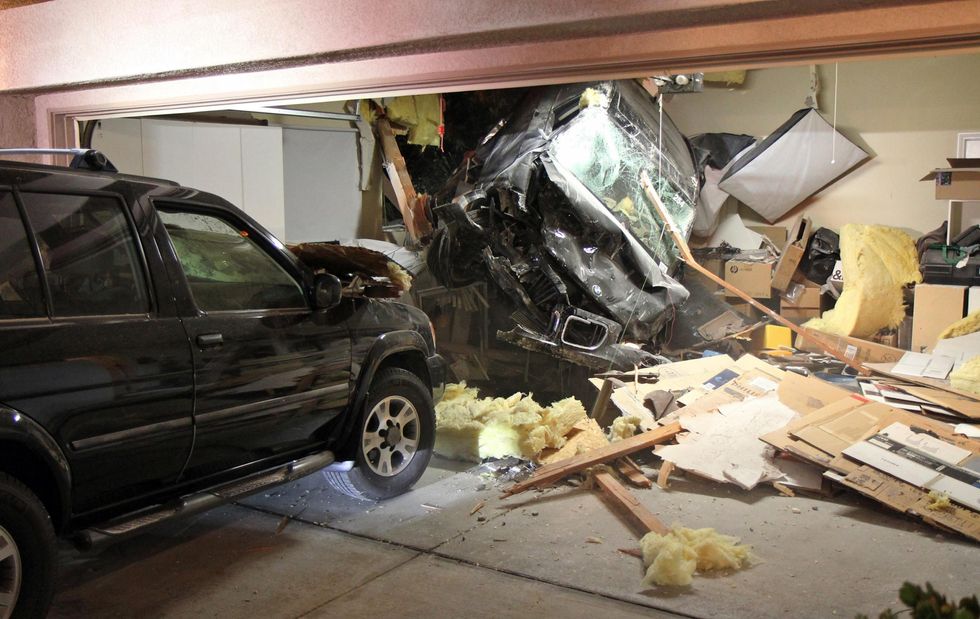 A BMW crashed through the roof of a Californian home early on Wednesday morning.