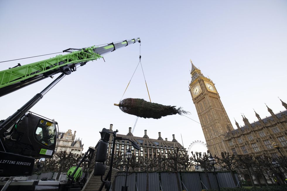 A 40ft Christmas tree has been put up at the Houses of Parliament to mark the beginning of the festive season in Westminster.