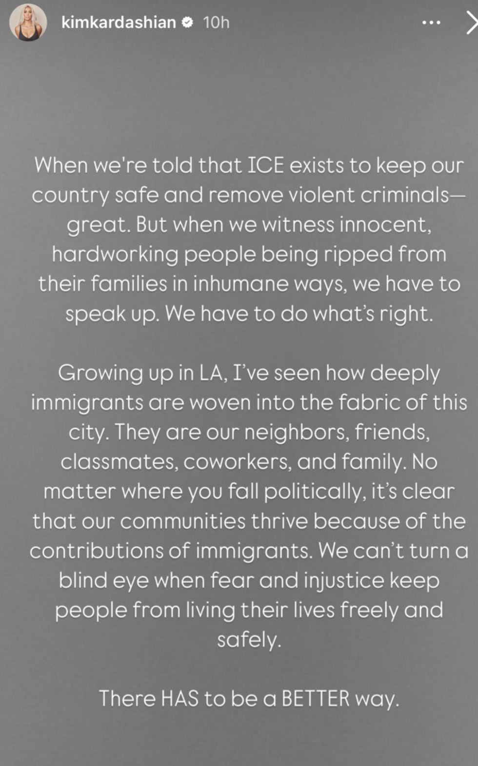 “When we witness innocent, hardworking people being ripped from their families in inhumane ways, we have to speak up. We have to do what's right," she wrote.