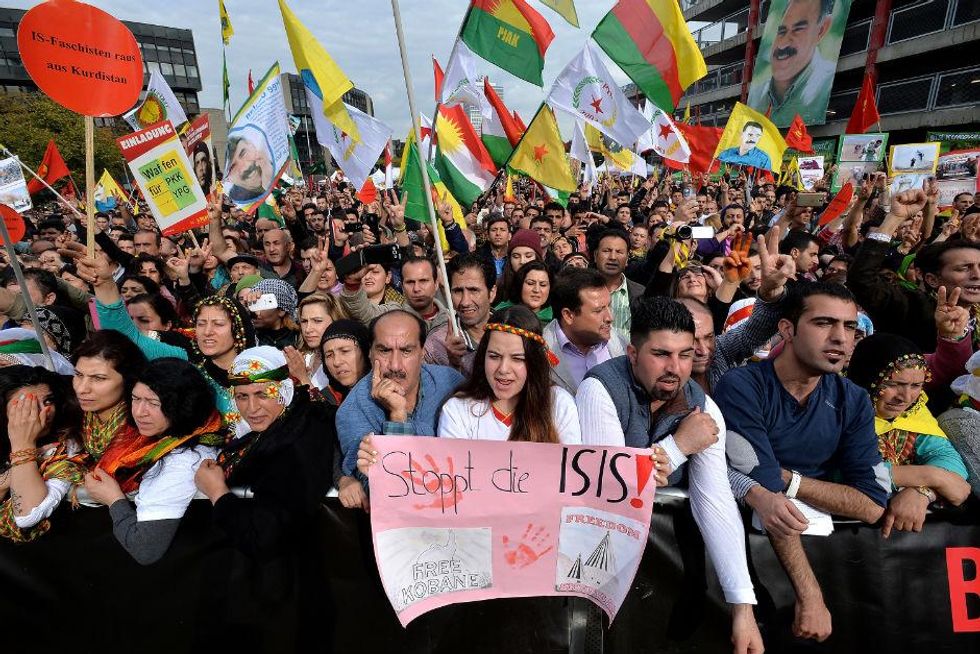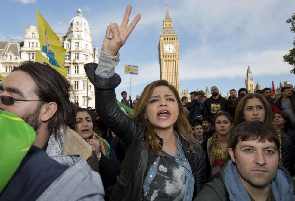 Thousands of demonstrators have marched in cities across the world this weekend to show their support for the people of Kobani, northern Syria, who are under siege from Isis militants.