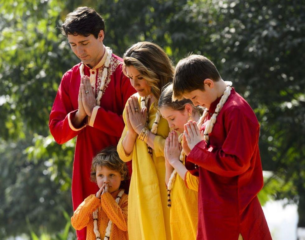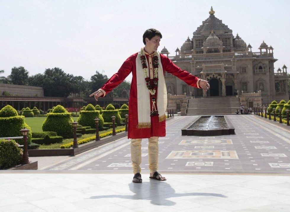 Offending garments include Trudeau's long, multicolored sherwanis, usually worn on special occasions such as weddings or in Bollywood movies. Trudeau wore a sparkling gold one to a meeting with Bollywood's top brass while the film stars wore muted black suits. Add to that the Canadian first family's posey, soap-opera style namastes, and it's enough to keep social media here buzzing with memes and jokes.