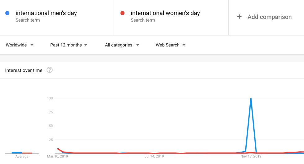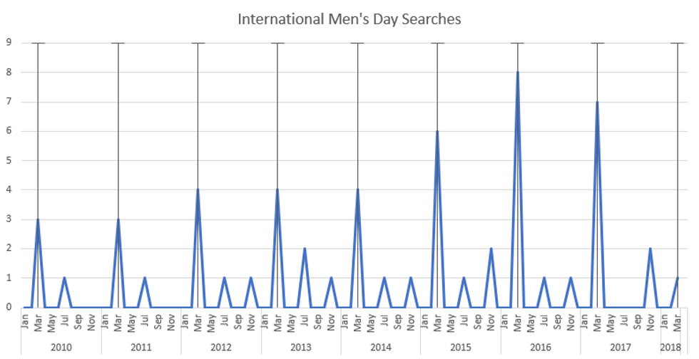 Last year, a graph compiled by a Reddit user showed that since 2010, more people google "International Men's Day" in March than they do in November, when it actually falls.