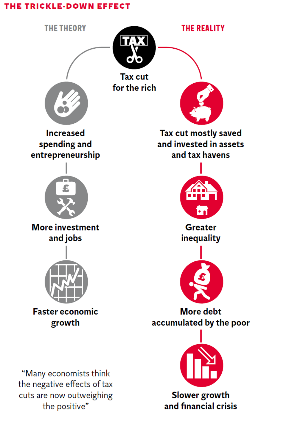 Once you realise that trickle-down economics does not work, you will see the excessive tax cuts for the rich as what they are: a simple upward redistribution of income, rather than a way to make all of us richer.
