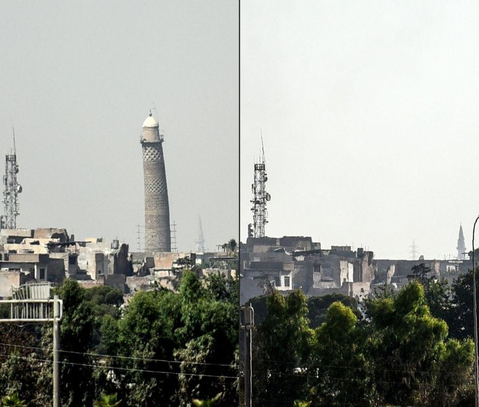The Al-Nuri mosque, once famed for its leaning minaret, was damaged by explosives.