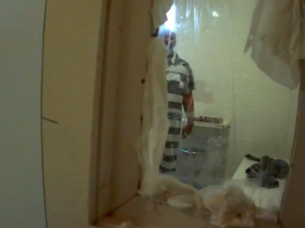 The recording shows Sutherland standing in his cell, ignoring repeated commands to kneel.