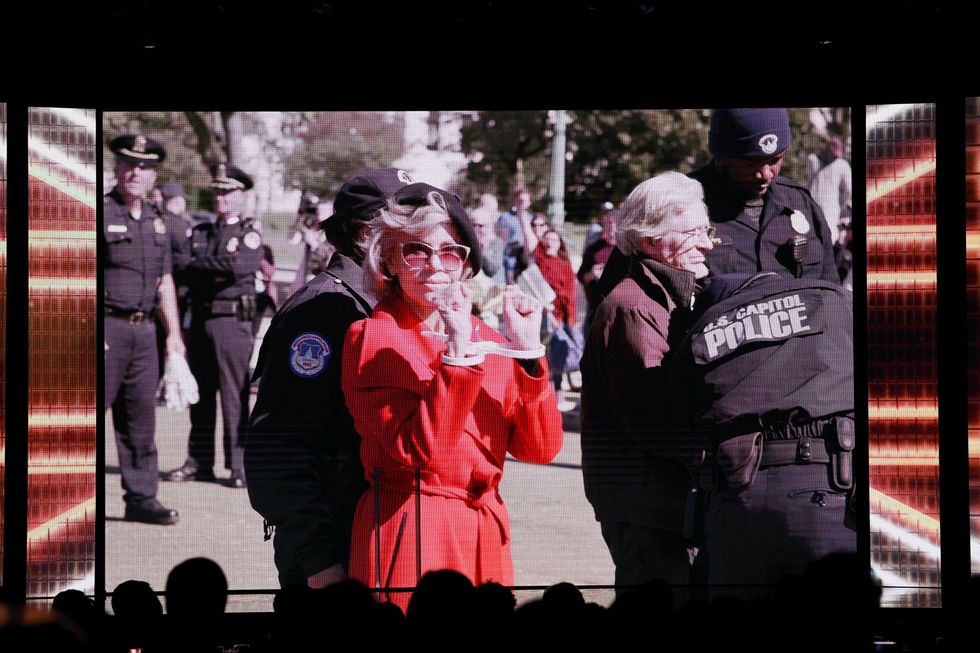 Jane Fonda accepted her British Academy Britannia Awards (BAFTA) award whilst in handcuffs after she was arrested while protesting climate change - the first in the award's history.