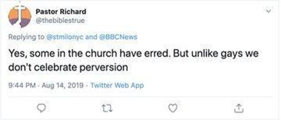 The account also called homosexuality a "perversion", among other homophobic tweets which are too offensive to publish.