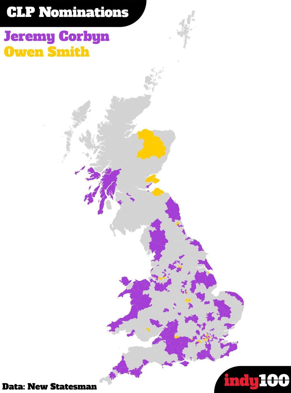 While some supporters might have their doubts, Corbyn is way ahead of Smith. So far, of the 213 constituencies that have made supporting nominations, Smith has 27 and Corbyn has 186.