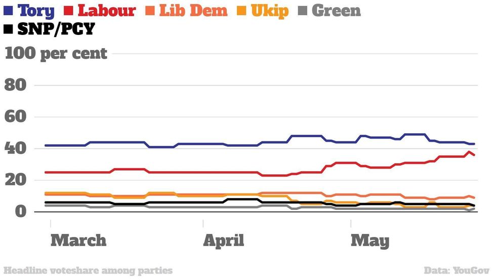 The Conservatives won a majority in 2015 against former Labour leader Ed Miliband, who had been ahead in the polls by a distinct margin from 2013 to 2015.