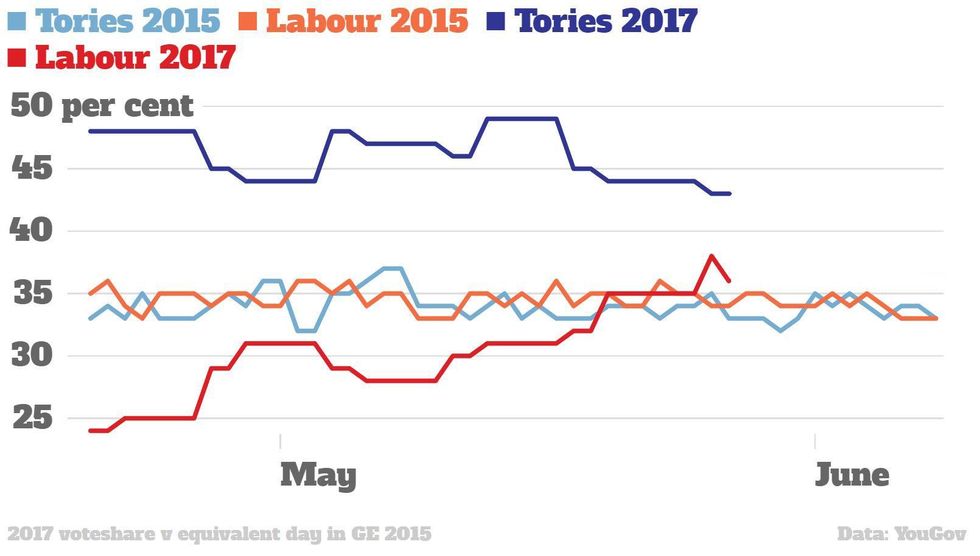 Consider these factors when observing the gulf Jeremy Corbyn's Labour has to narrow in 2017 compared to the neck and neck race that was the 2015 election.