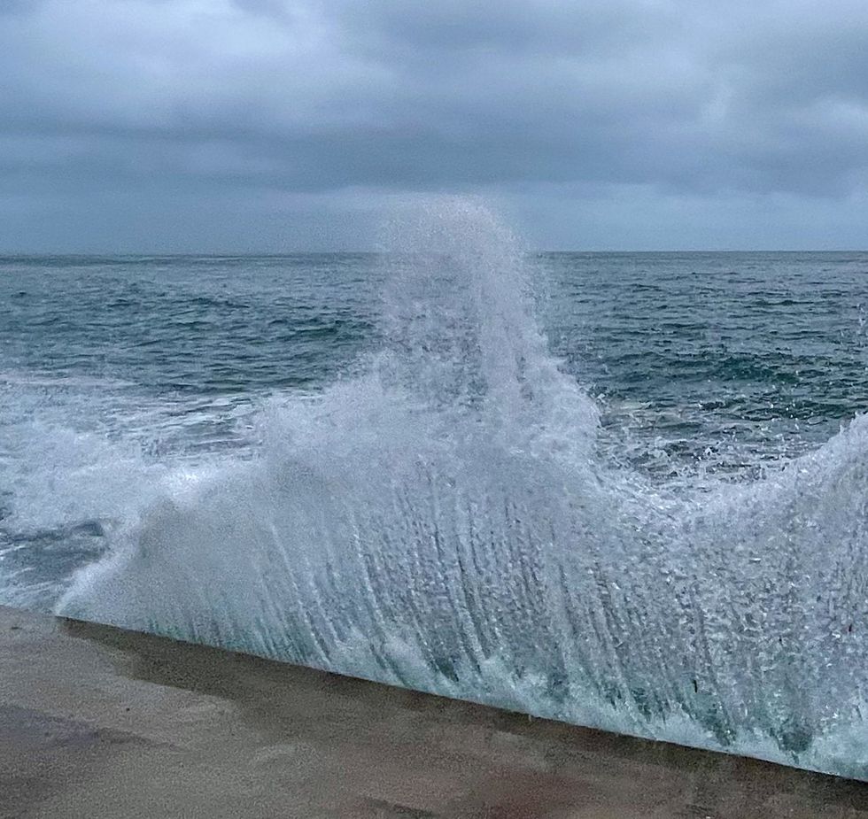 “I noticed due to high tide and effects of Storm Barra, the waves were splashing against the steps that lay horizontally to the beach, almost along its full length. The waves were quite big at times.